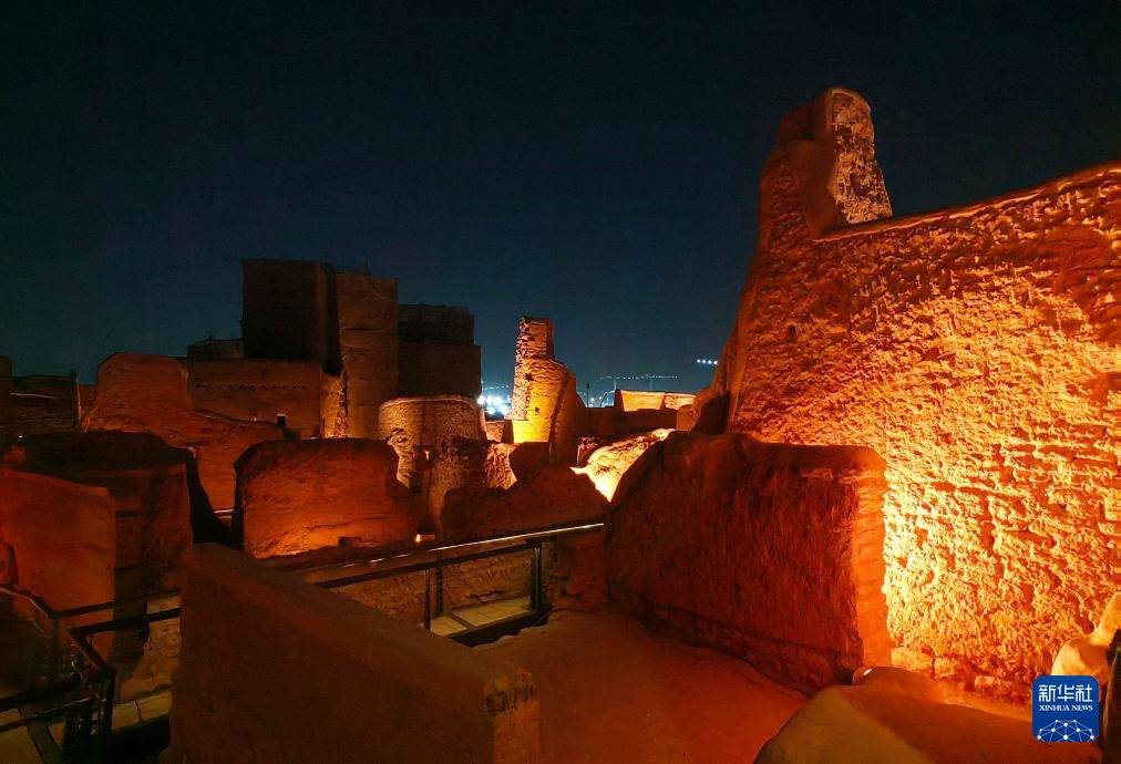 这是10月27日在沙特首都利雅得市区拍摄的迪里耶夜景。
